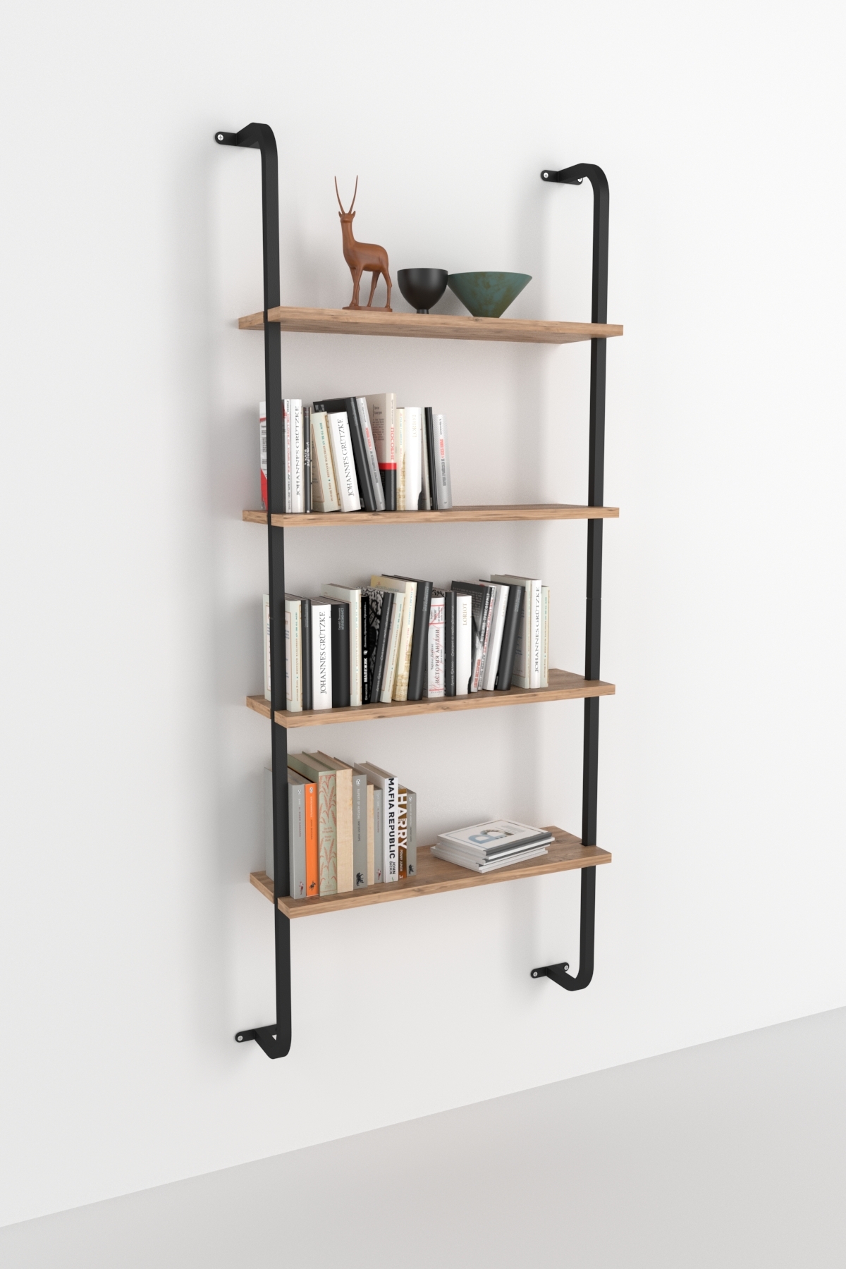 WALL MOUNTED 4 SHELVES METAL BOOKSHELF - PINE
