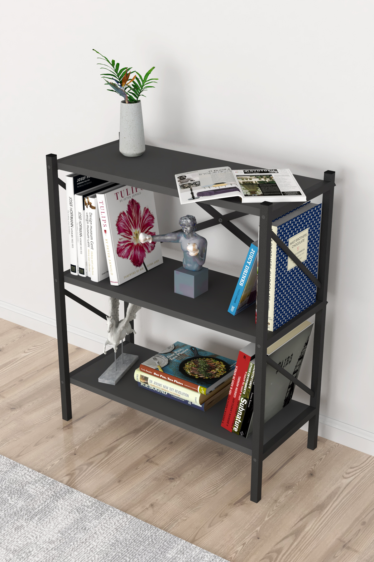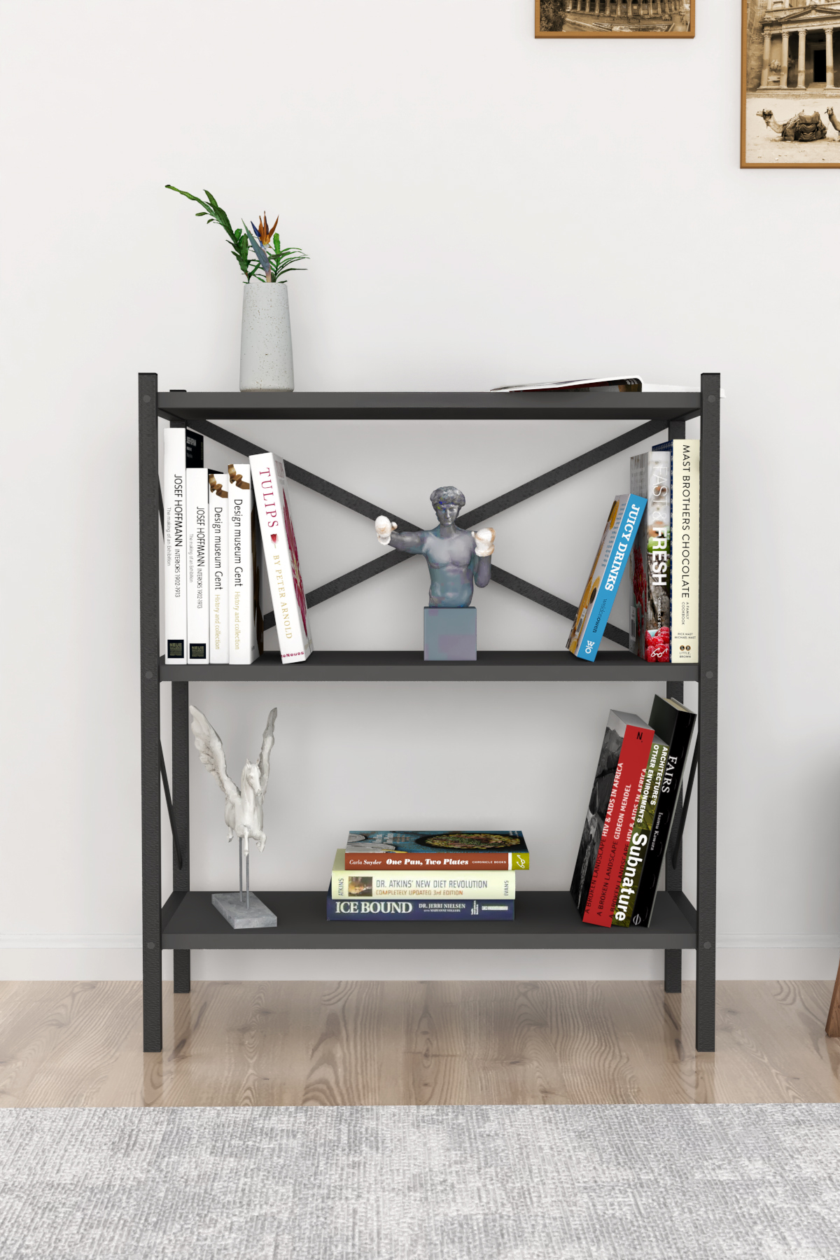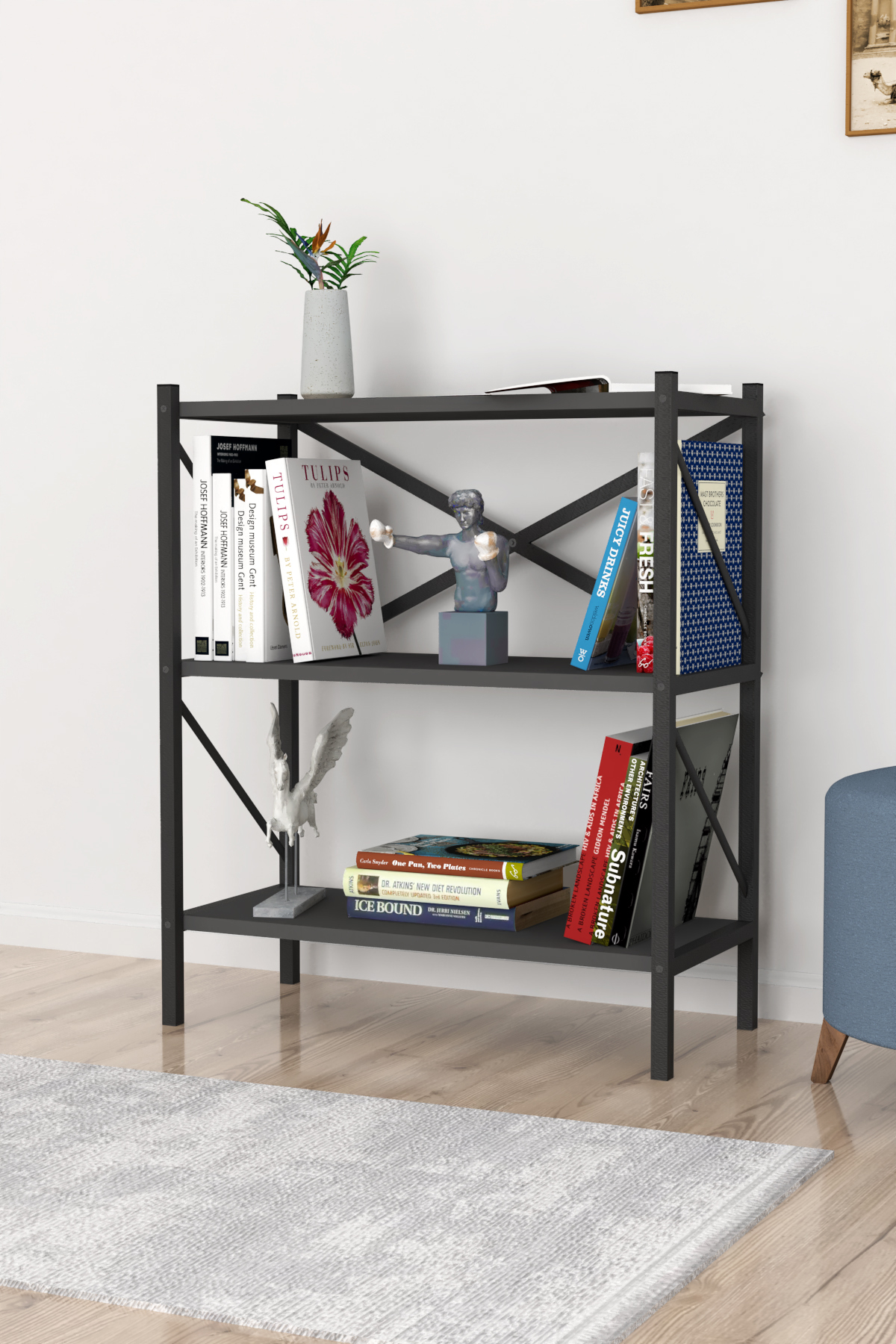 3 SHELVES METAL BOOKSHELF - ANTHRACITE