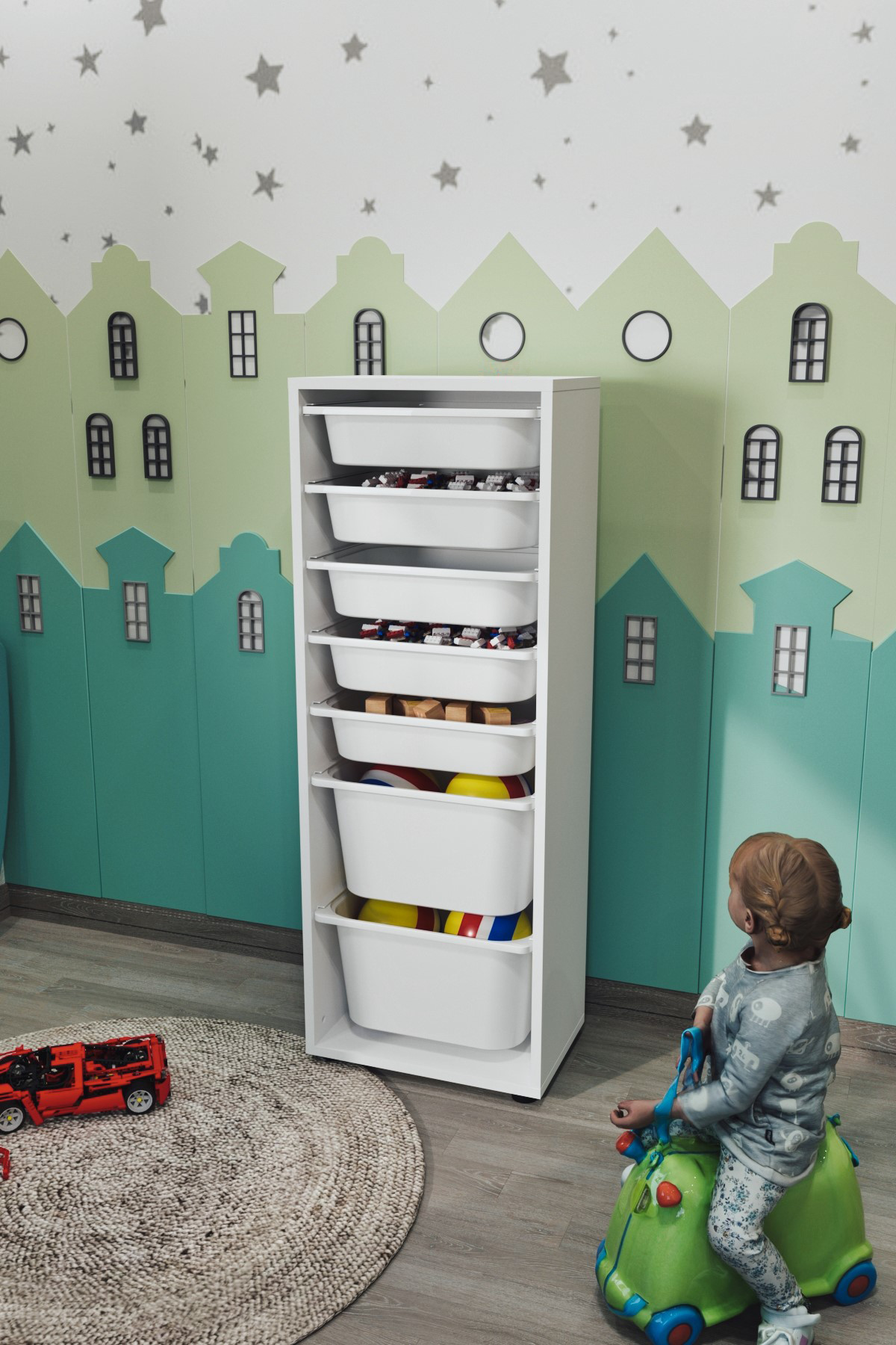 Стеллаж PERA с 7 выдвижными ящиками - белый