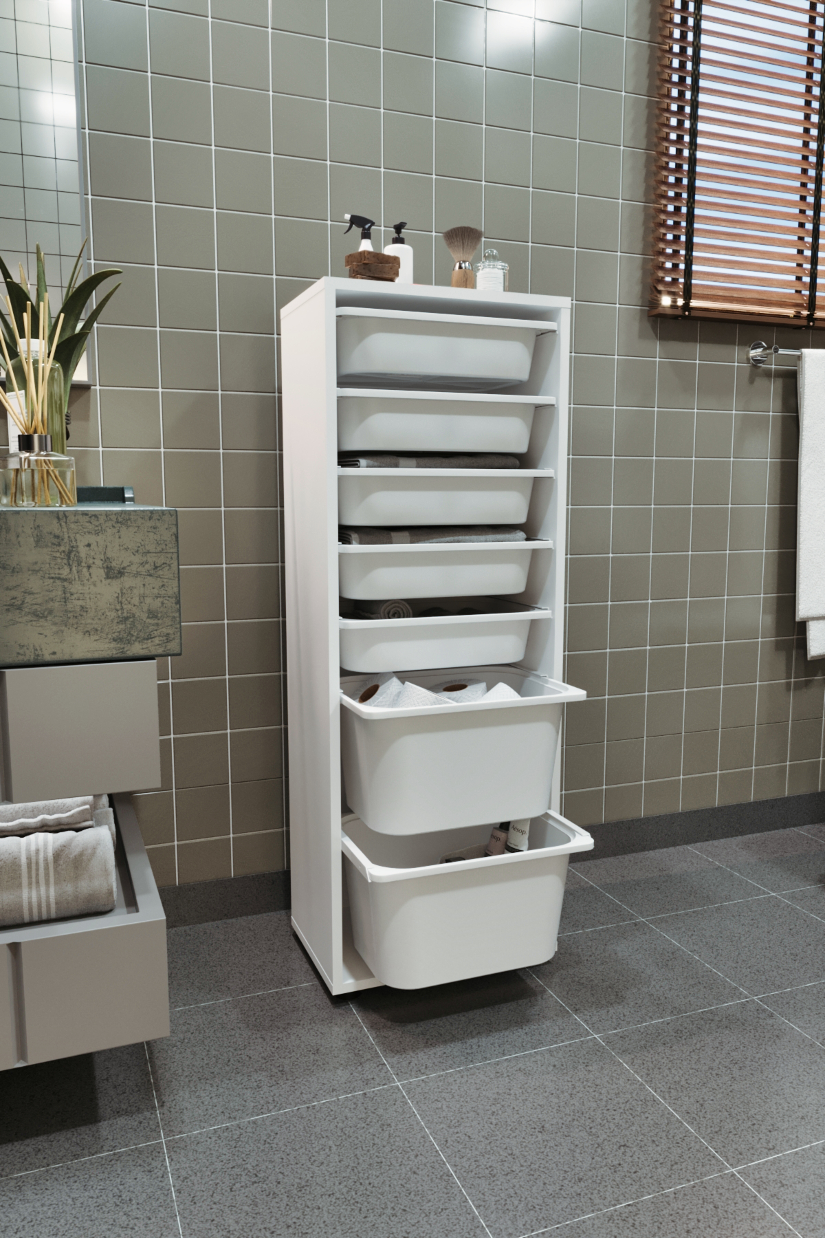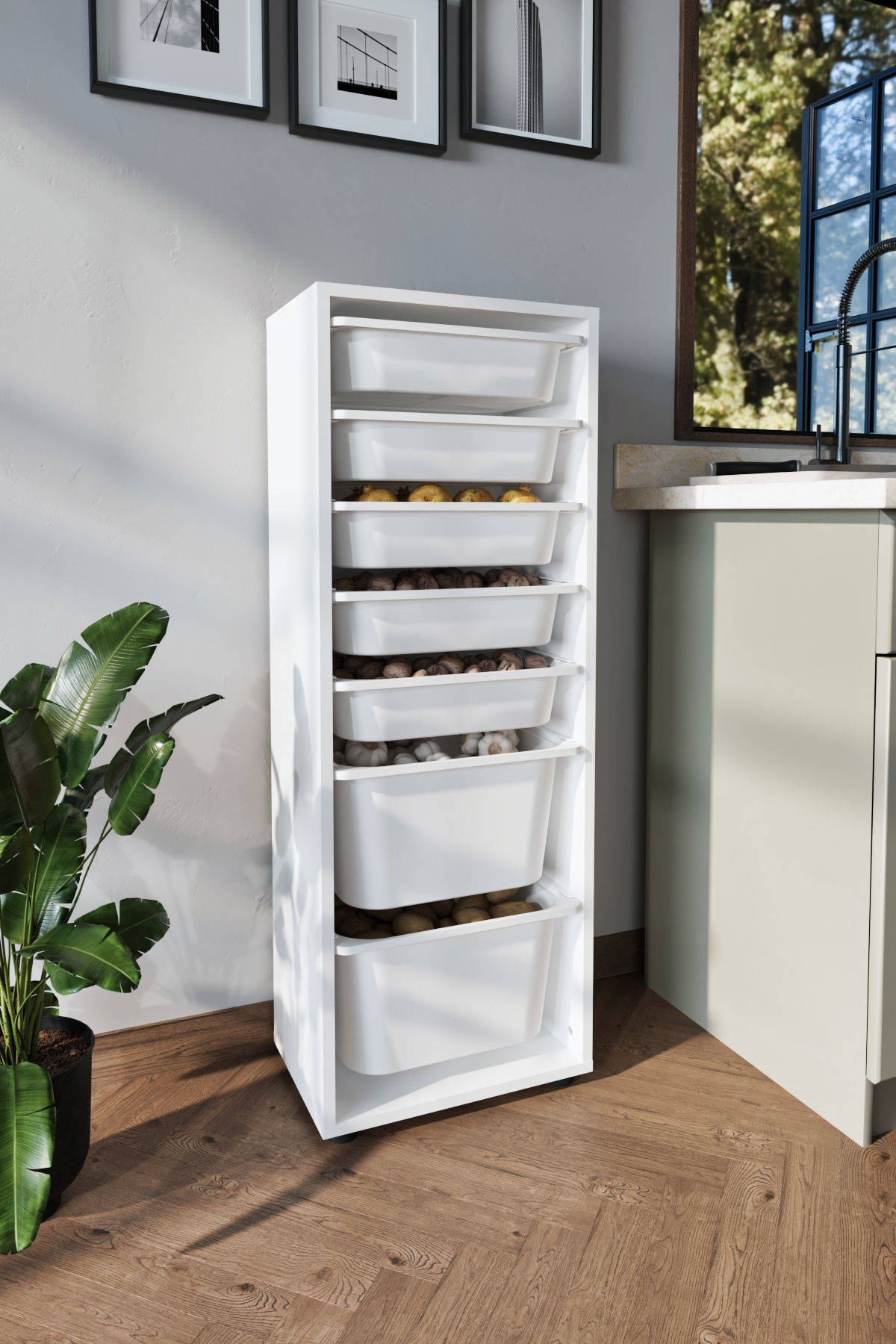 Стеллаж PERA с 7 выдвижными ящиками - белый – купить за 7 624 ₽ | DwellHome