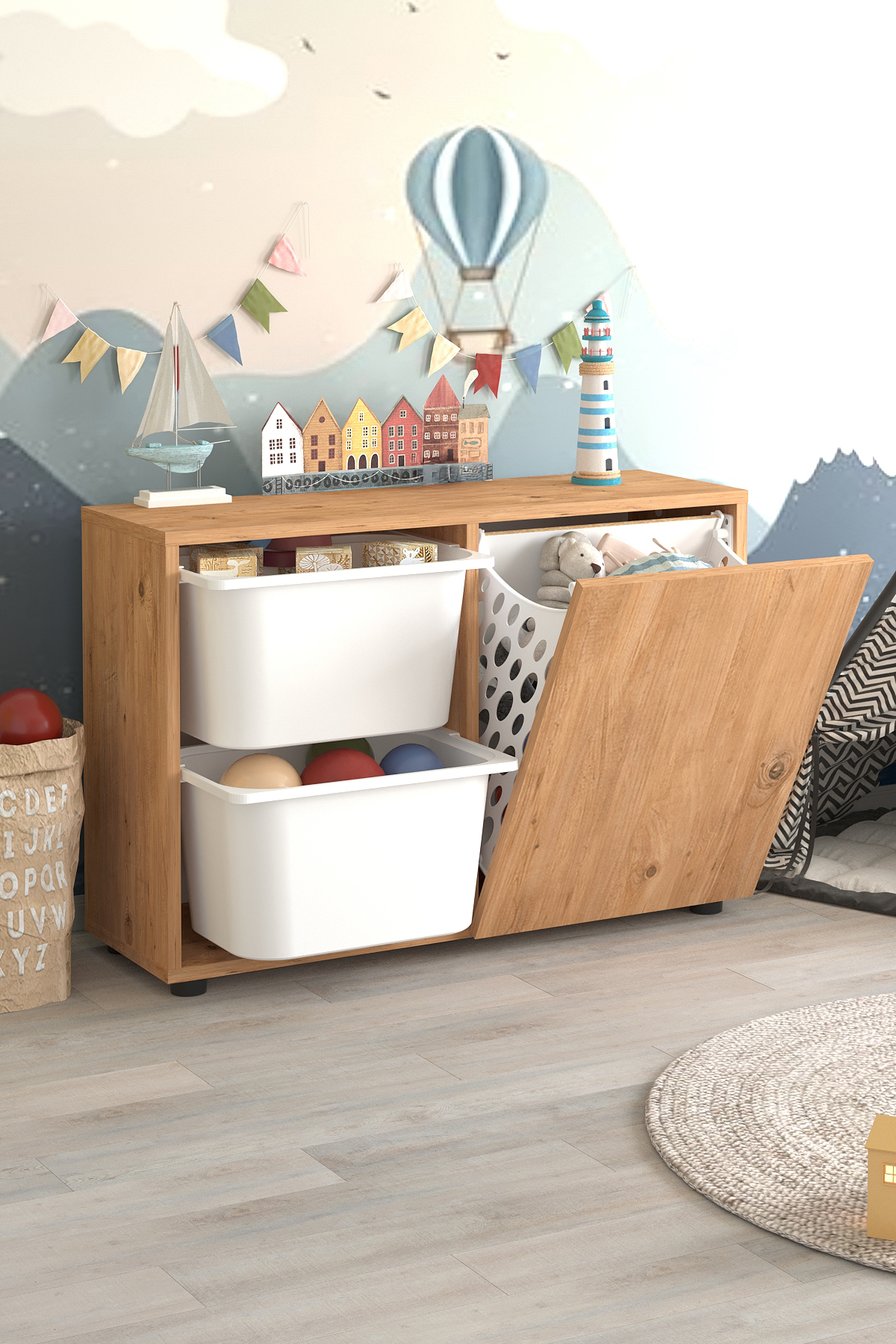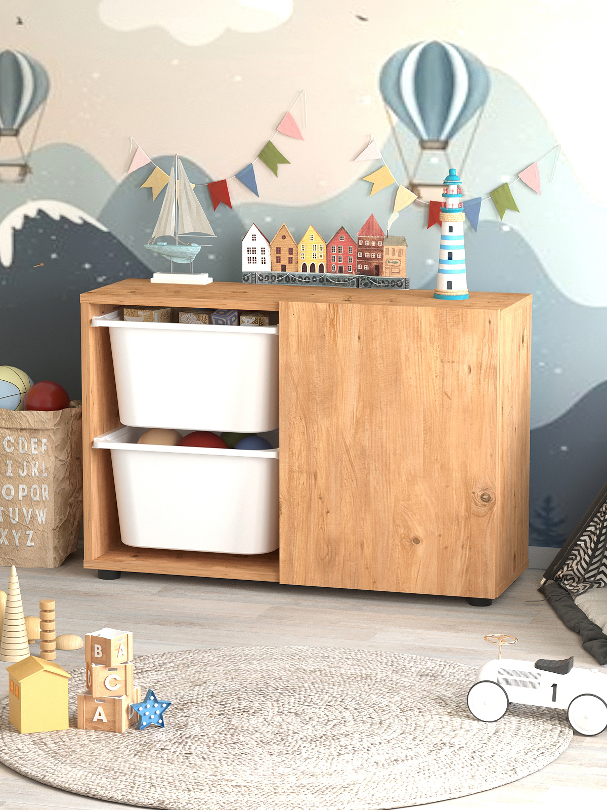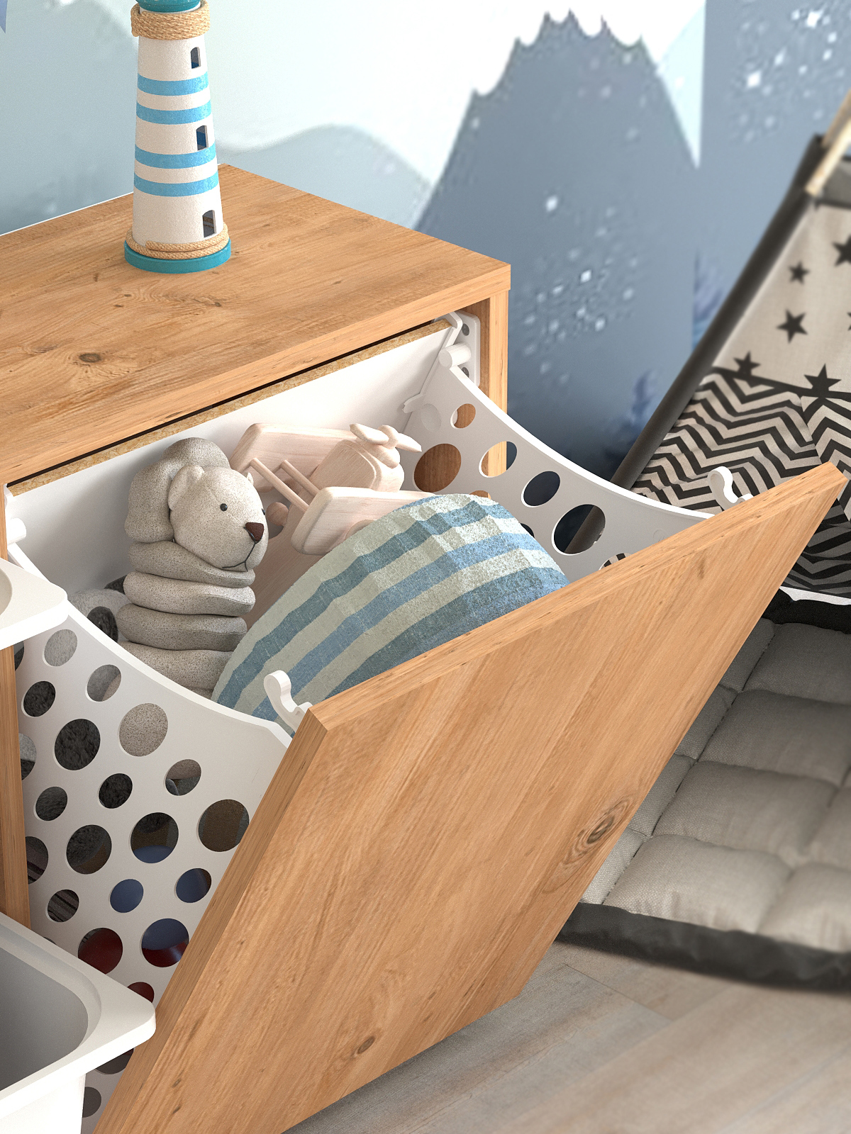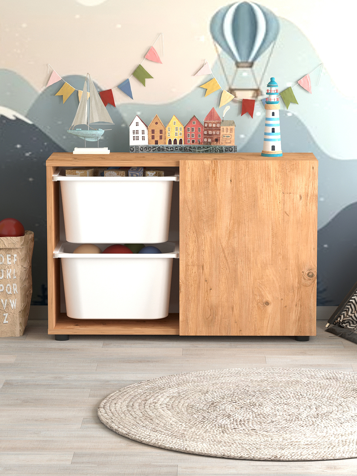 Стеллаж SILA с 2 выдвижными ящиками - сосна