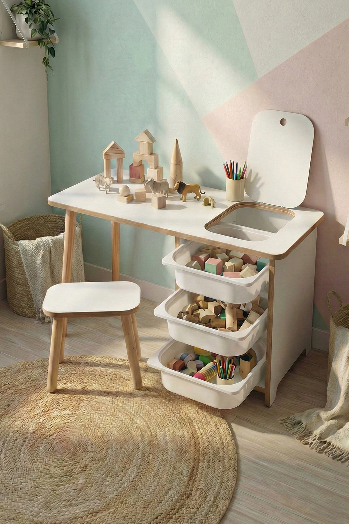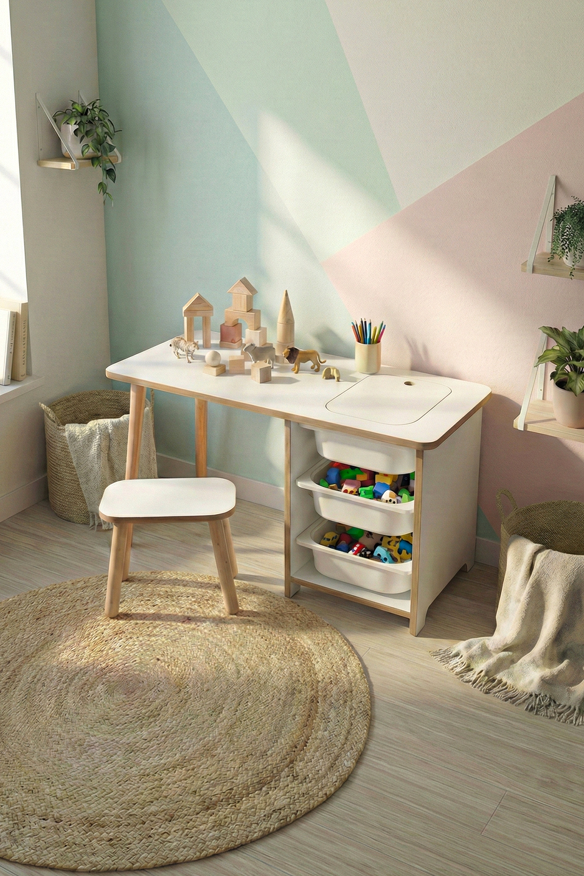KIDS ACTIVITY TABLE WITH CHAIR - WHITE
