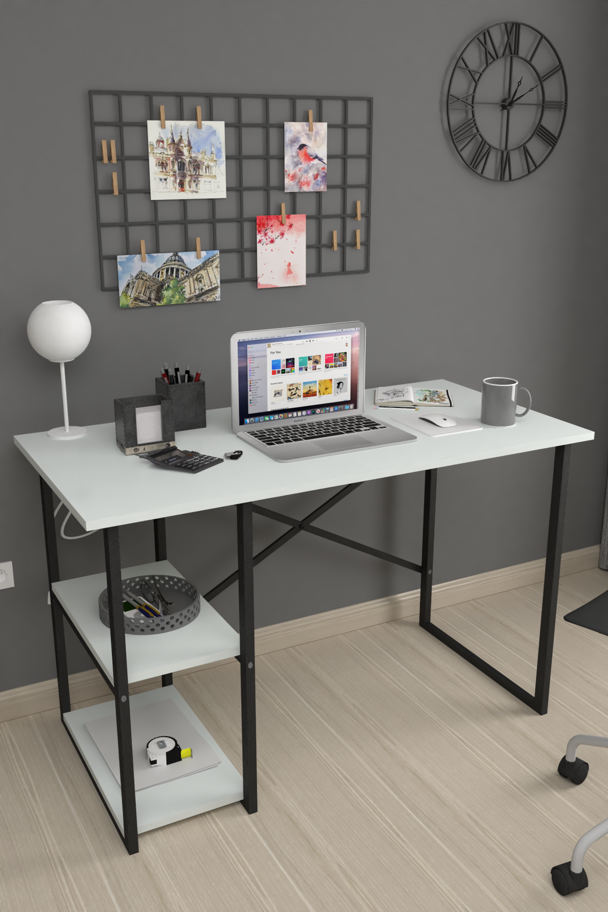 Стол рабочий с 2 полками 120х60 - белый – купить за 6 649 ₽ | DwellHome